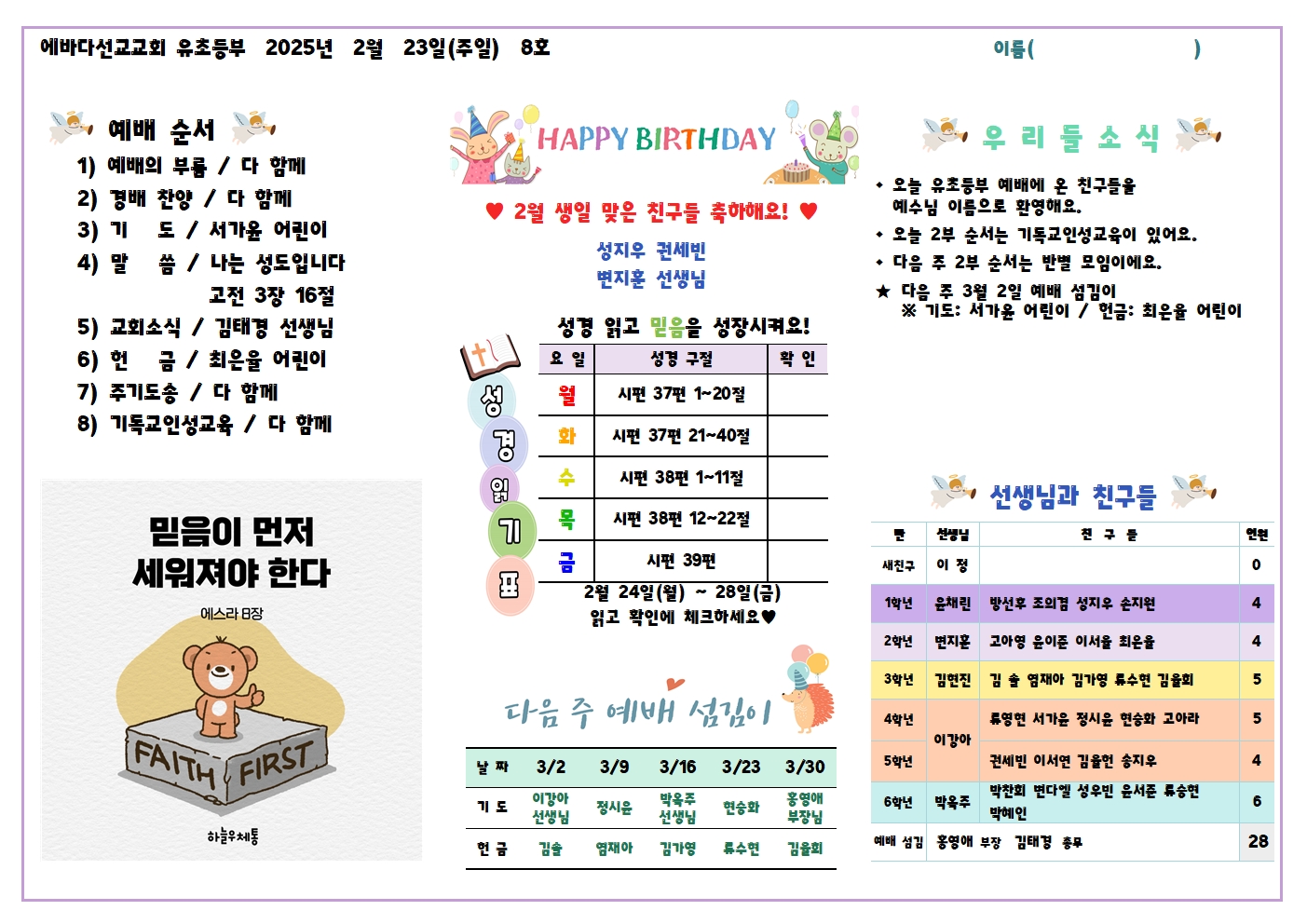* 착오로 셋째 주에 주보를 배부한 관계로 넷째 주는 주보 없는 날로 지정했습니다.