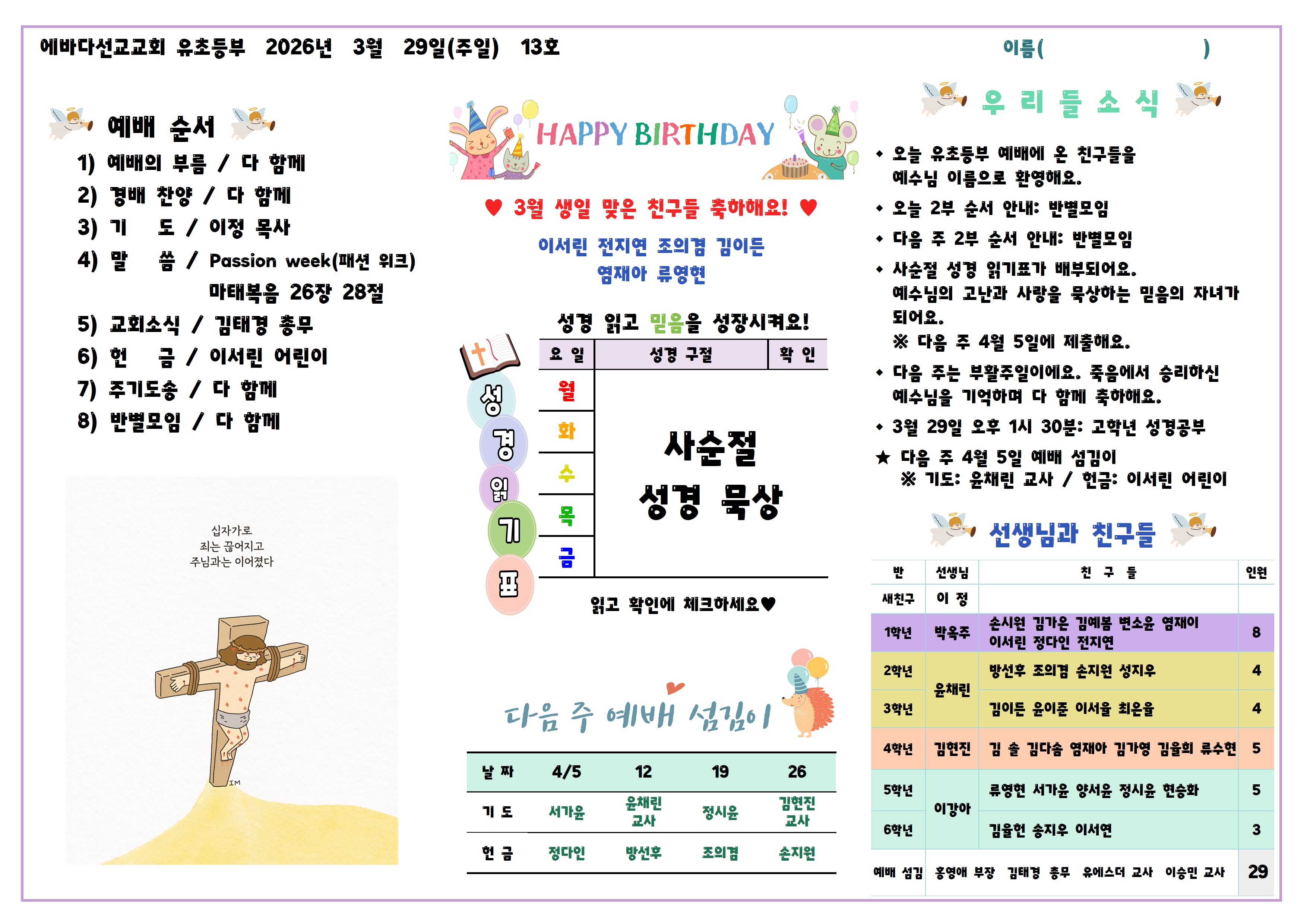 2026년 3월 29일 주보 이정 2026-03-27 추천 0 댓글 0 조회 3 http://ebdchurch.onmam.com/bbs/bbsView/82/6620081 첨부파일 (0) 0
