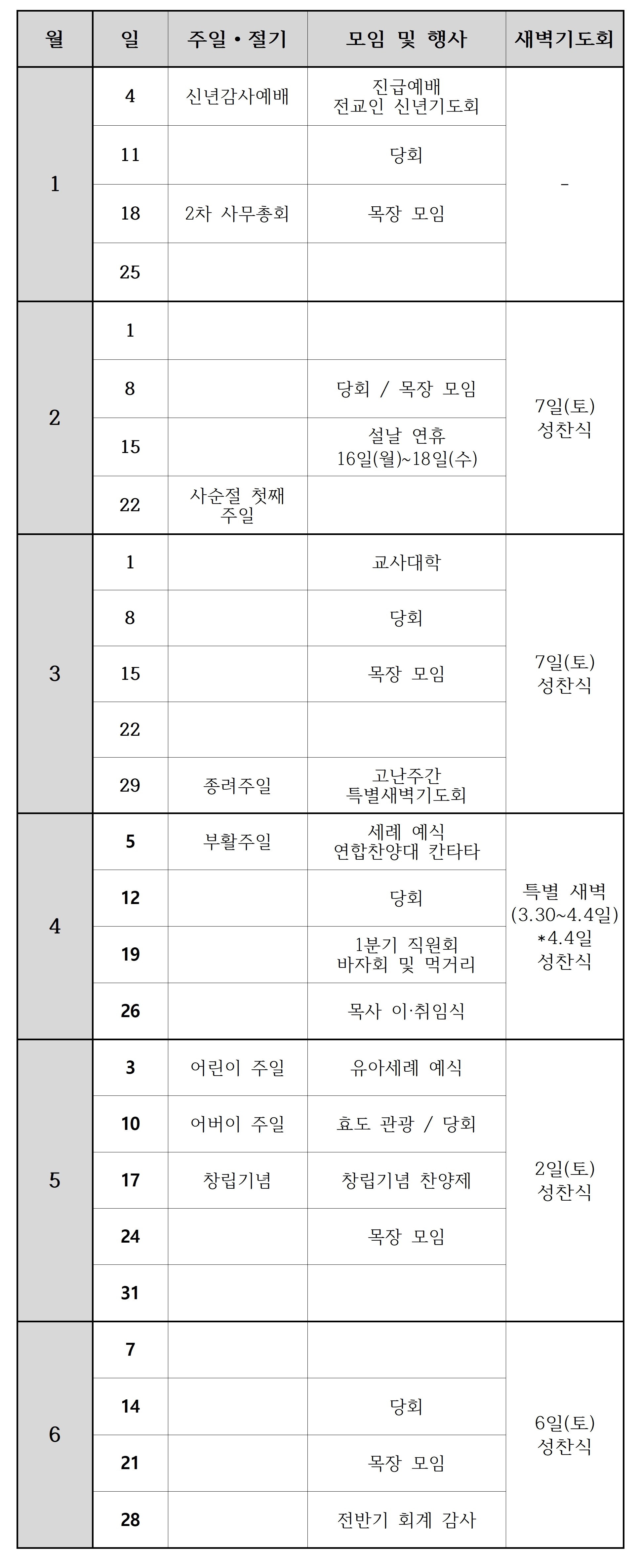 2026년 주일 행사